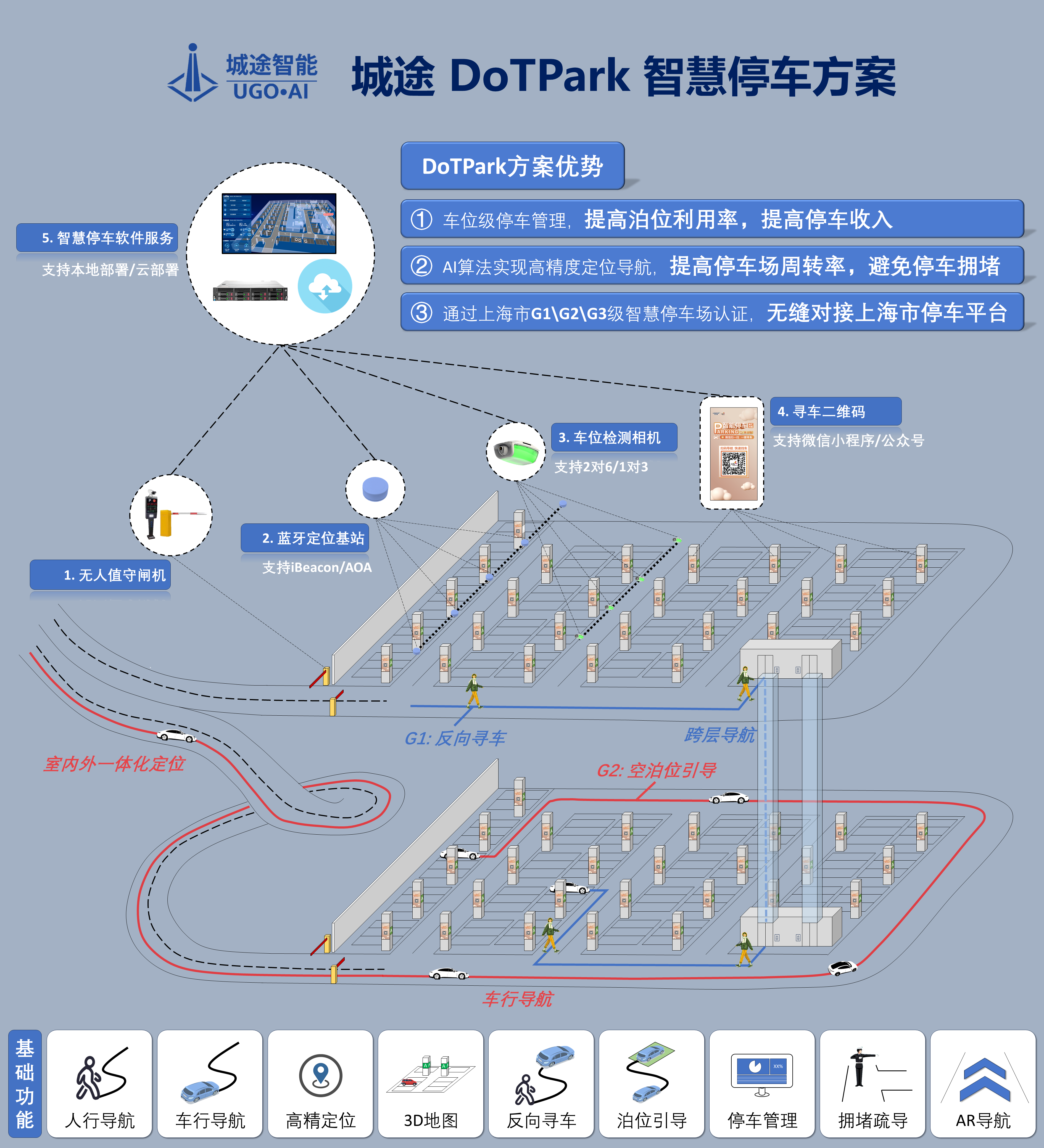 提升停车体验的关键是室内定位设施,我们的定位设施有从亚米级到米级的多种性价比的配置方案。